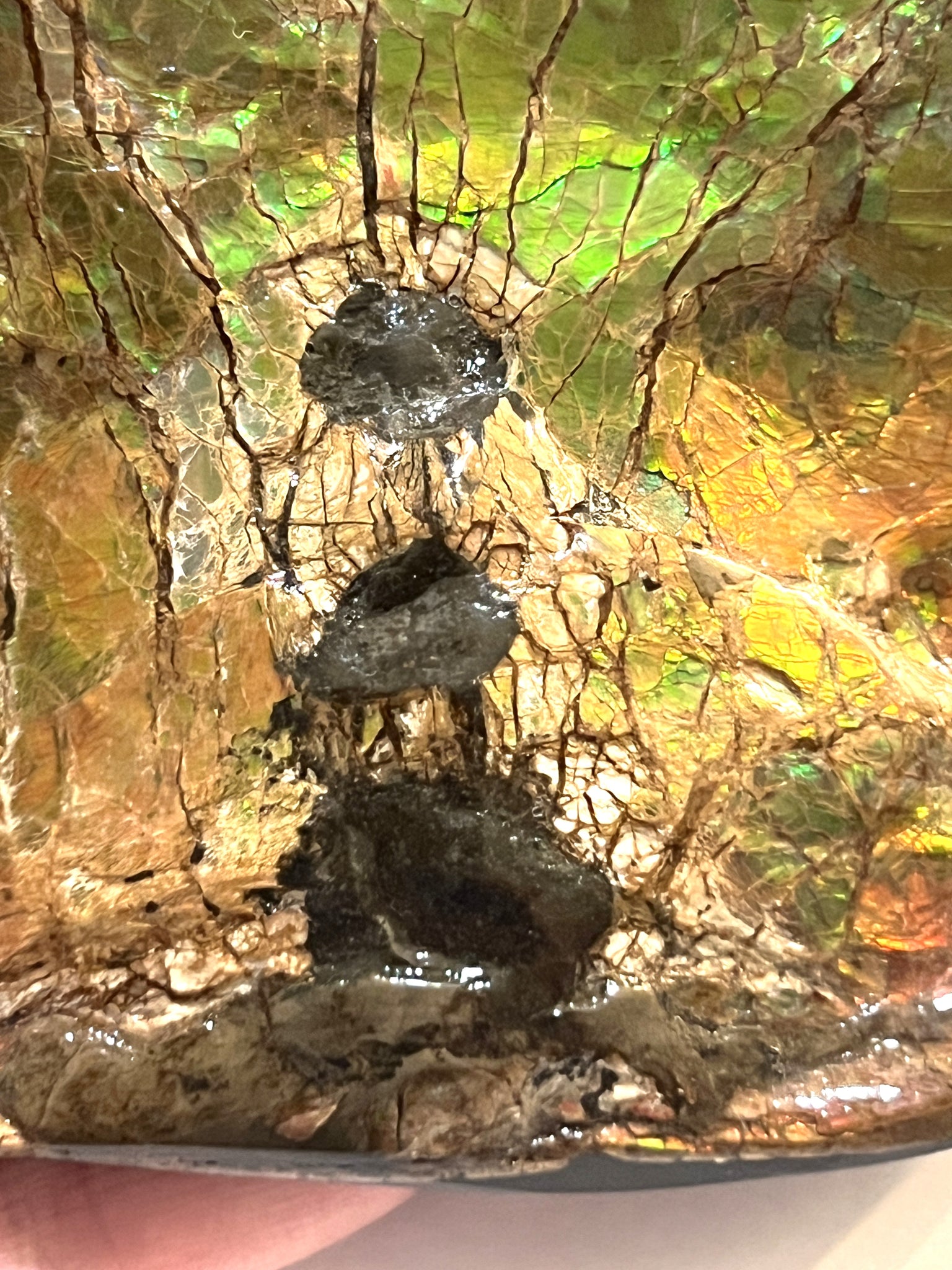 Ammolite Ammonite Gem Stone from Alberta with Mosasaur Bite Marks 4.3 Inches
