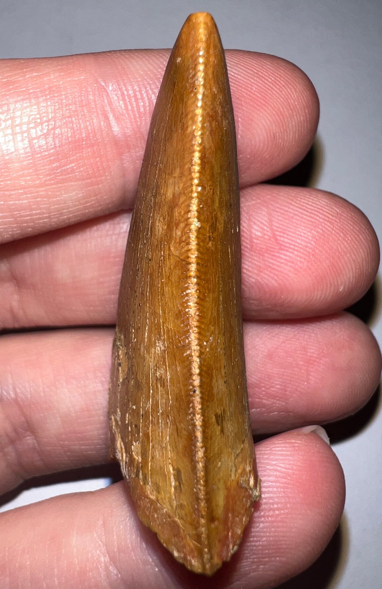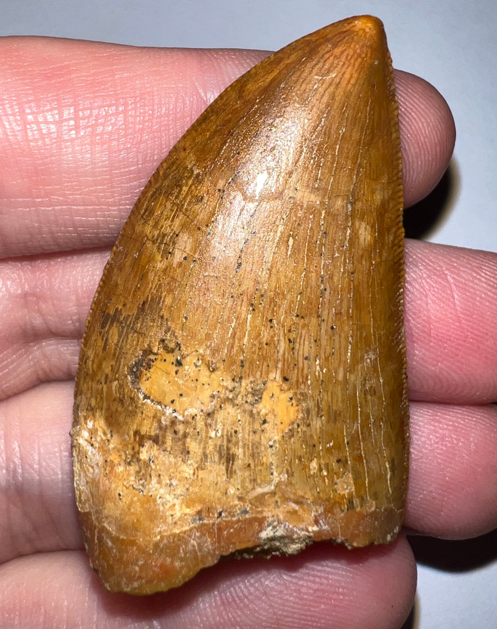 GEM Carcharodontosaur Fossil Tooth 1.94 Inches No Repair Incredible Serrations