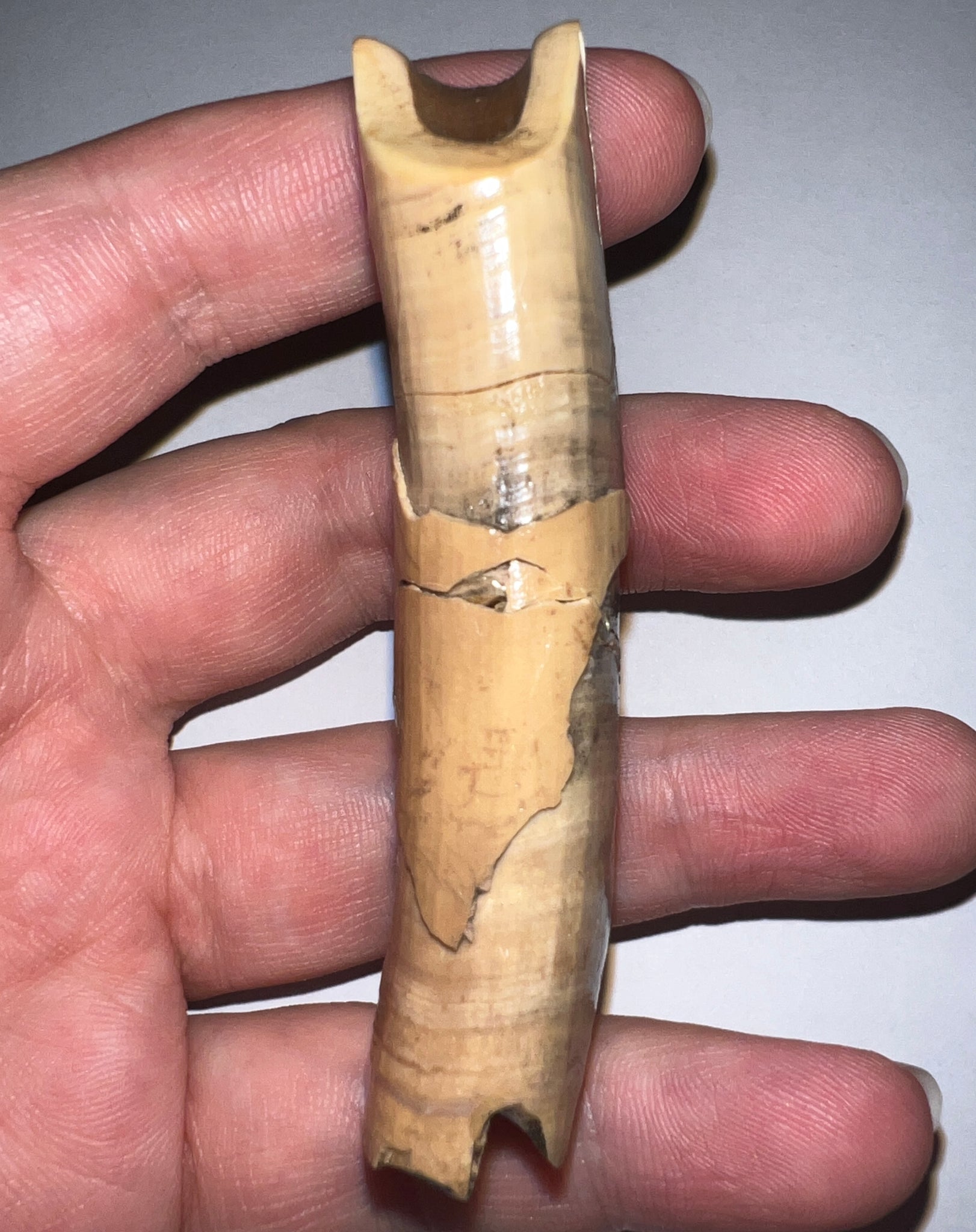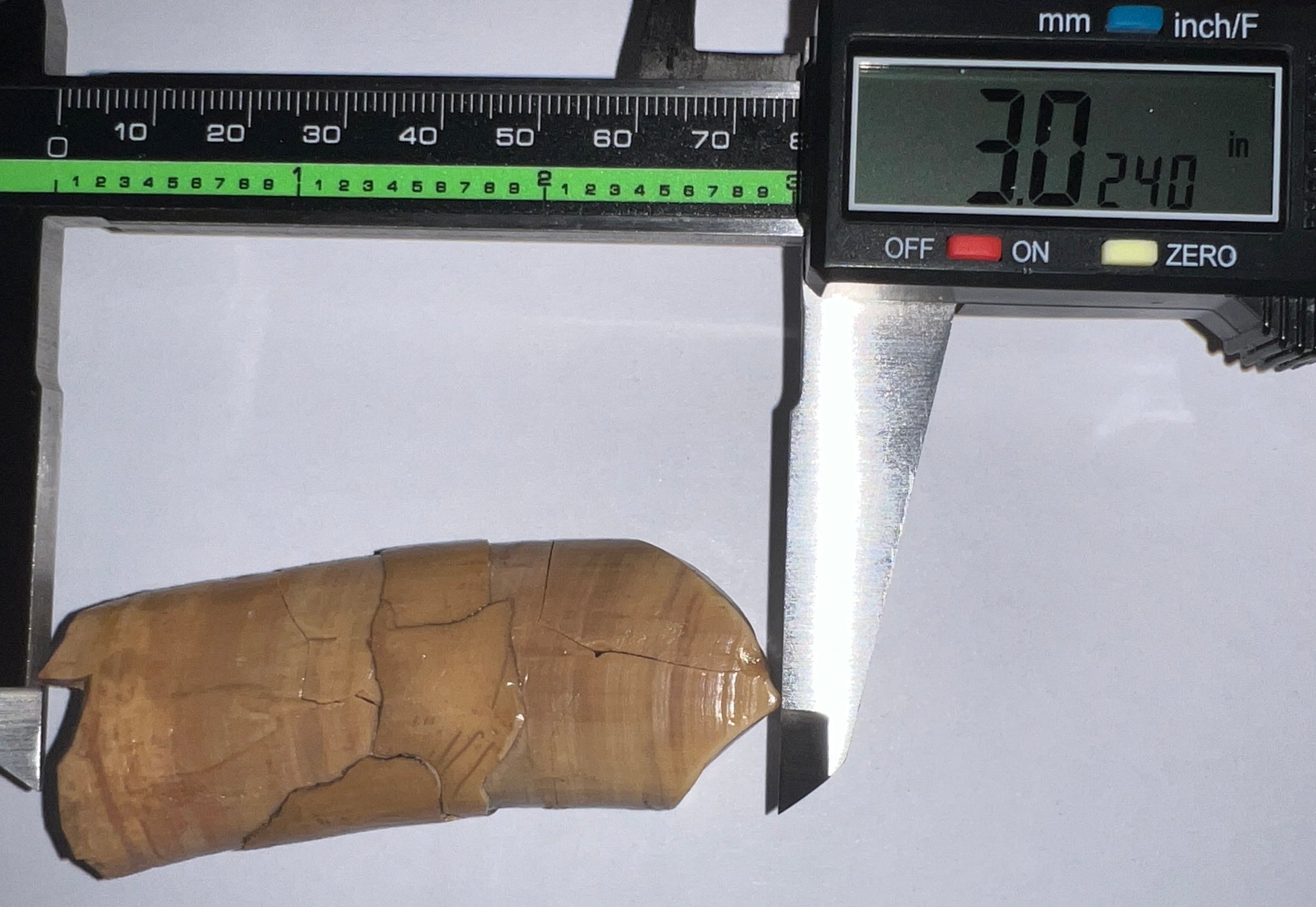 This is a Beautiful canine tooth from Paramylodon harlani, a Ground Sloth from the Pleistocene of Florida! The tooth is in INCREDIBLE condition with a great root! It has a couple repaired breaks, but isn't restored in anyway! It measures 3.02 inches (7.67 cm) and comes in a double sided clear display case with a stand for easy transport and a beautiful display!