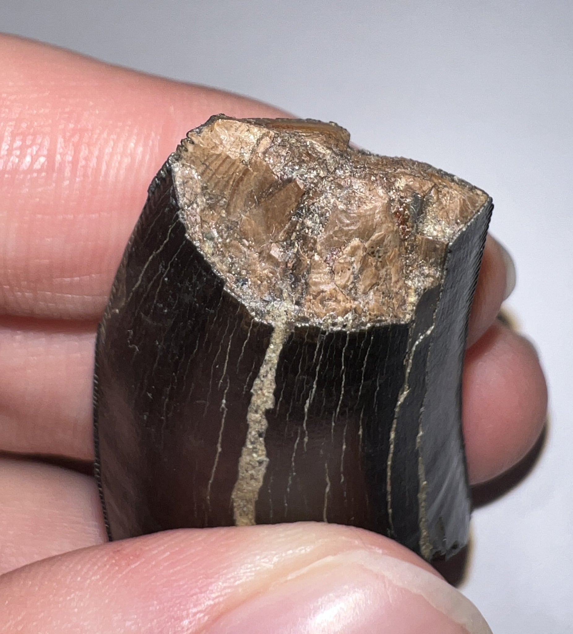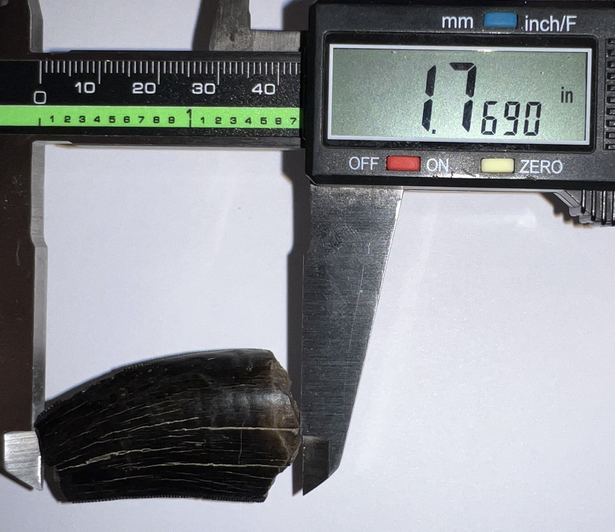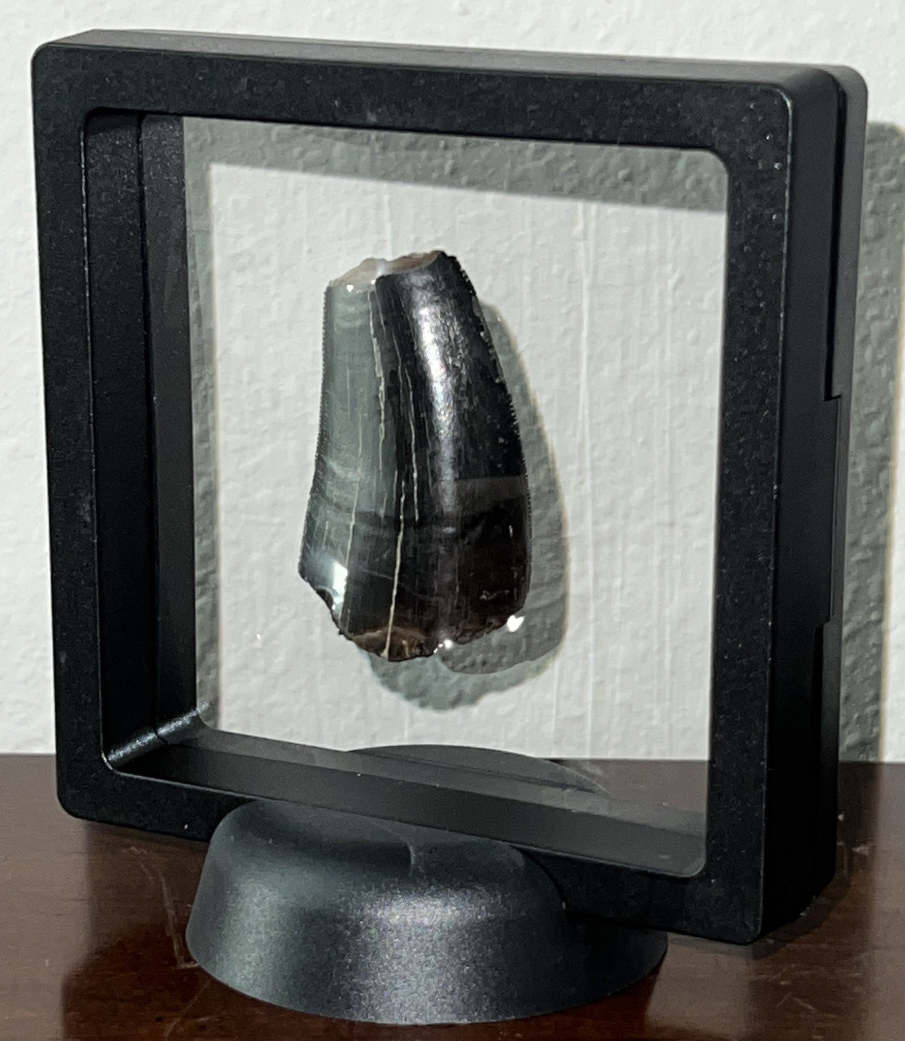 And now for that which needs no introduction, but will get one anyway. This Is a Wonderful tooth from TYRANNOSAURUS REX from the Hell Creek Formation in Carter County, Montana, USA! The tooth has Incredible serrations front and back, a partial root, and ZERO repair or restoration! It measures 1.76 inches (4.47 cm) along it's longest edge (straight line measurement)! It comes in a double sided clear display case for easy transport and display!