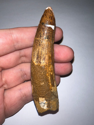 MONSTER Spinosaur Fossil Dinosaur Tooth 4.24 Inches with Display Stand and Case