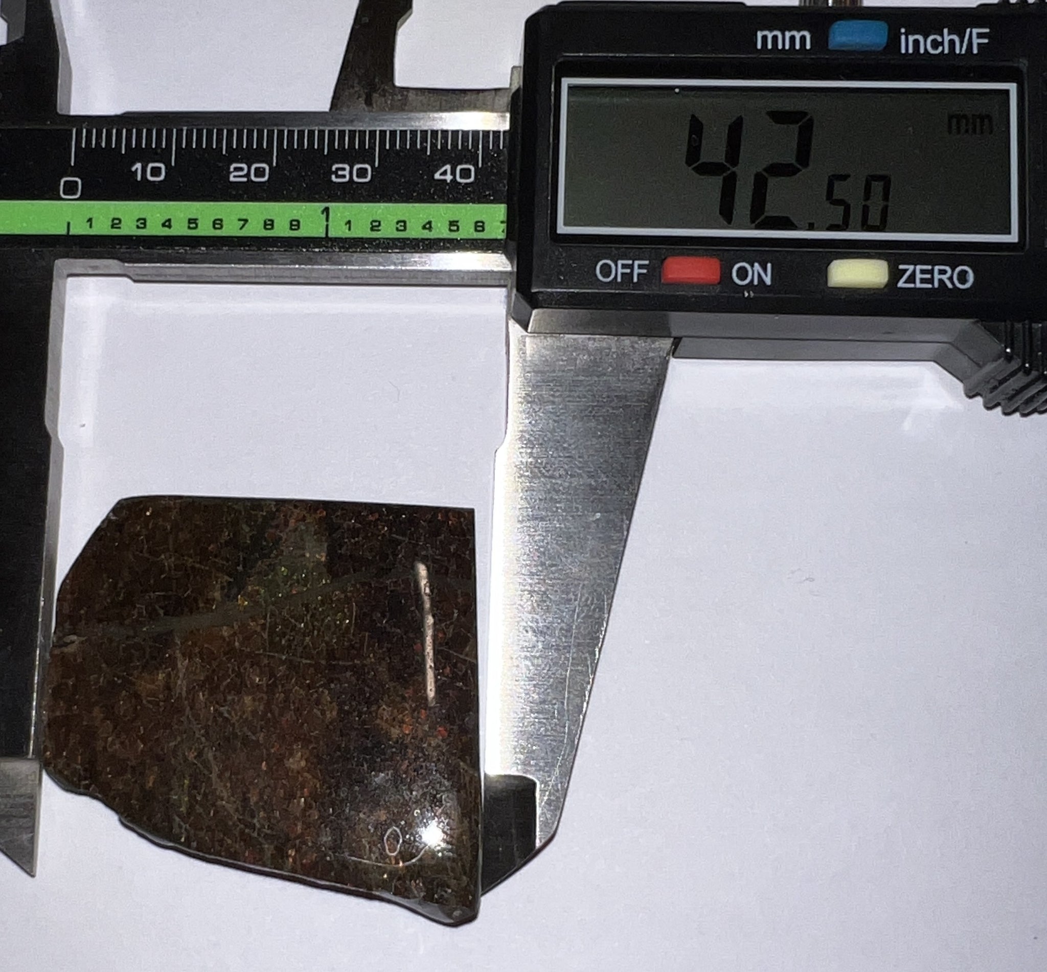 This is a Beautiful Ammolite gemstone from the Bearpaw Formation of Alberta, Canada! The piece has fantastic iridescence showing a beautiful Orange Color with bits of Red and Green! It measures about 1.7 inches (4.25 cm) across and weighs 22.1 grams!